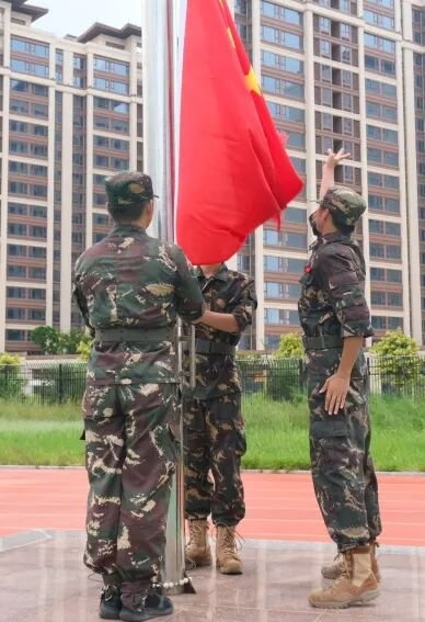 開營儀式在莊嚴的國歌中正式拉開帷幕。國旗護衛(wèi)隊邁著鏗鏘有力的步伐護送國旗入場。在雄壯的國歌聲中,鮮艷的五星紅旗冉冉升起,全體師生肅立行禮,目光熾熱,展現(xiàn)了云揚學子昂揚向上的精神風貌和深厚的愛國情懷。