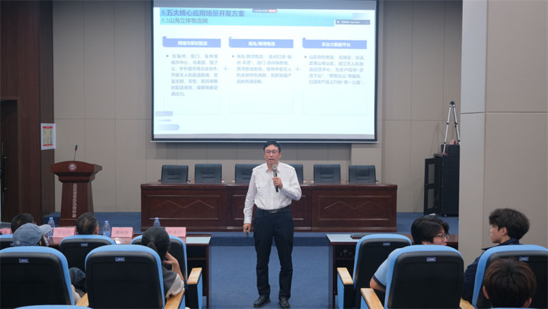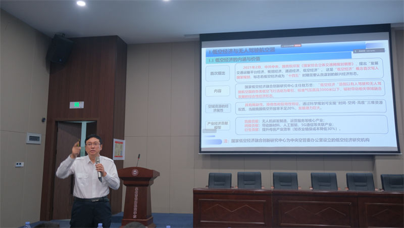 在師生熱烈的掌聲中,遲巖院長開始了主題講座。他結合云揚集團在航空領域的實踐積淀,從政策演進、技術突破與場景應用三大維度展開分享。在低空無人機發(fā)展板塊,他深入解讀了國家低空空域開放試點政策帶來的行業(yè)機遇,強調航空制造技術升級對無人機性能提升的核心支撐作用。